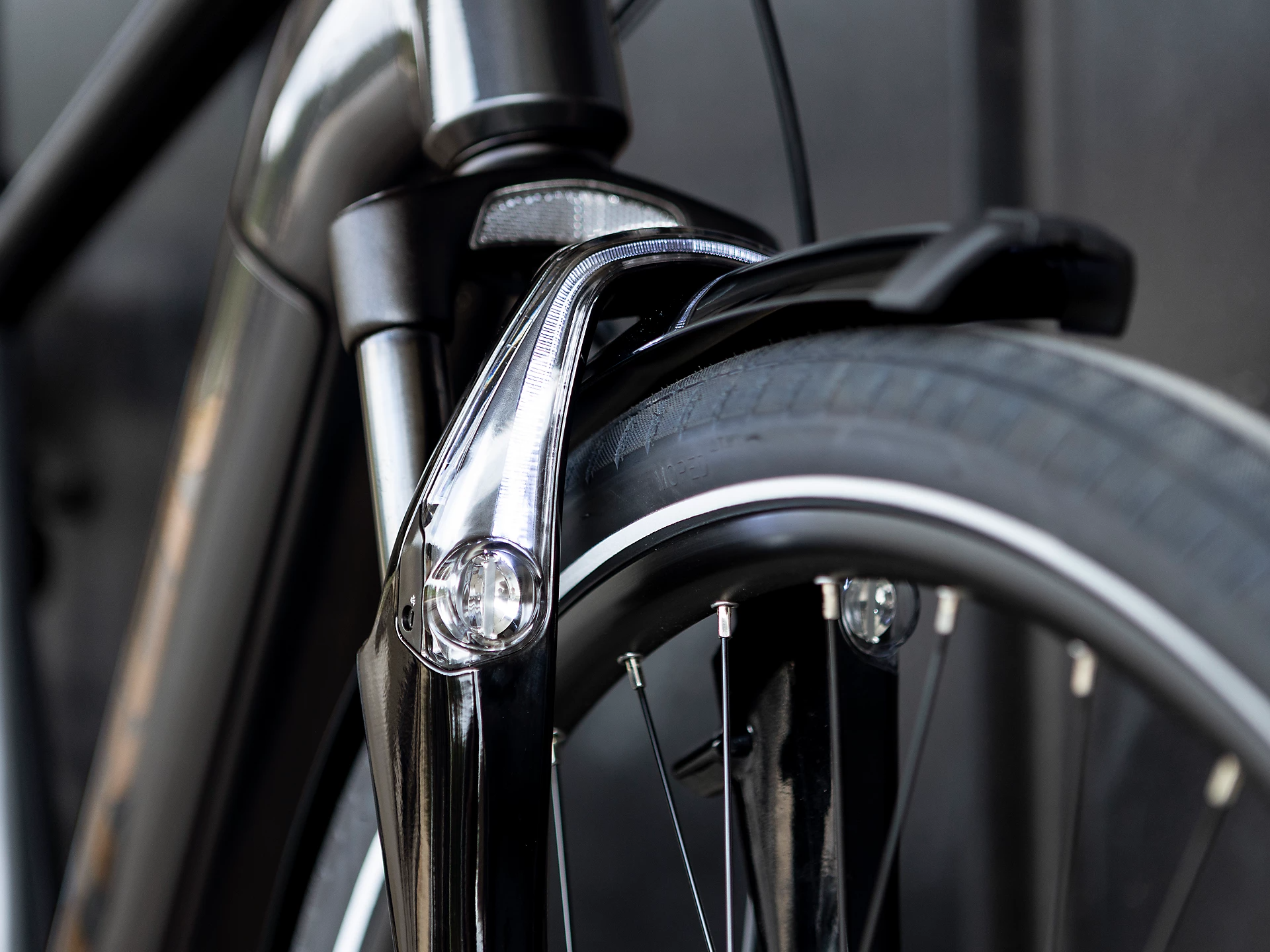 • The Forklight 3.0 suspension fork absorbs fatiguing bumps in the road and has integrated lights to illuminate your ride